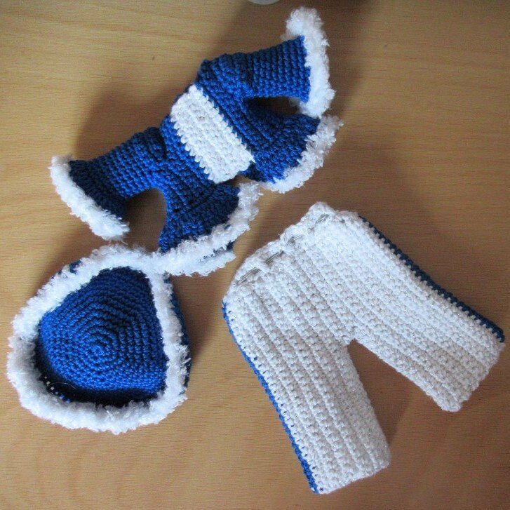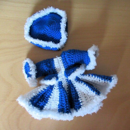 Die Kleidung passt Puppen von etwa 20 - 25 cm Größe.
