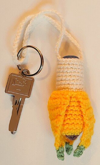 Nur die Banane ist ca. 7,5 cm hoch, mit der Schnur ist der Halter insgesamt ca. 20 cm lang.