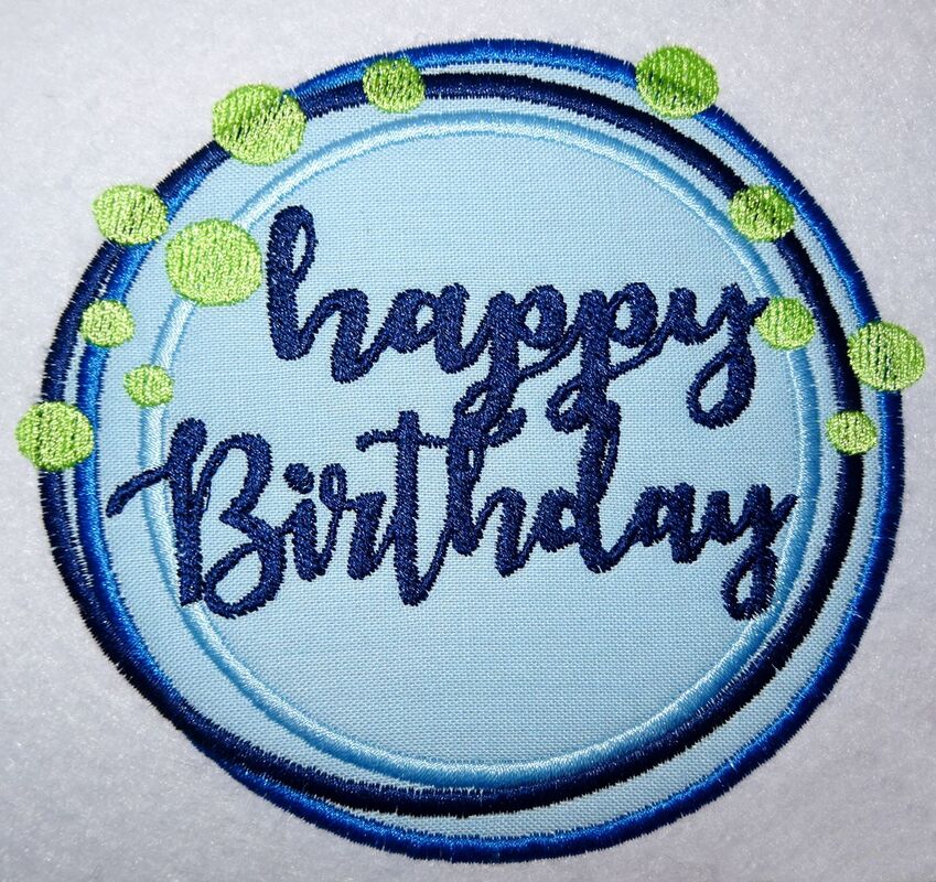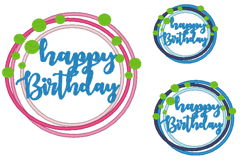 Stickdatei Happy BirthdayKreis Rahmen mit dreifachem Rand in 16 Größen für Stoffapplikationen