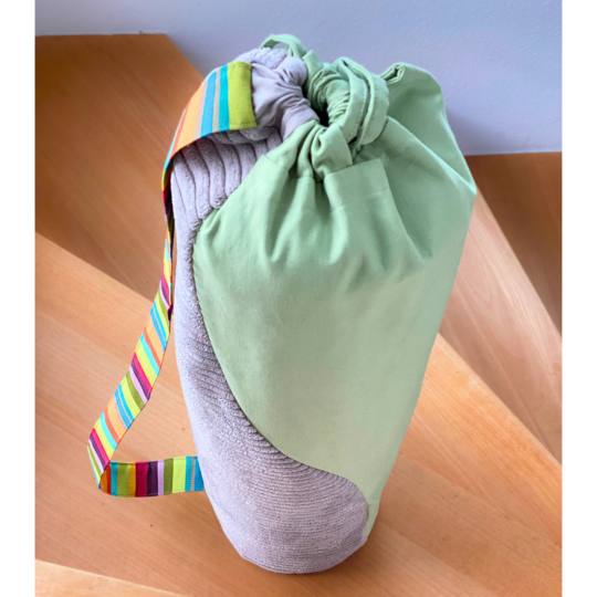 Mit dem langen Tragegurt: perfekt fürs Radfahren zum Sport: häng dir „SANA“ schräg über den Rücken oder seitlich über die Schulter. In der Tasche ist Platz genug auch für dickere Sportmatten. Ansonsten kann noch etwas mehr mitgenommen werden.
