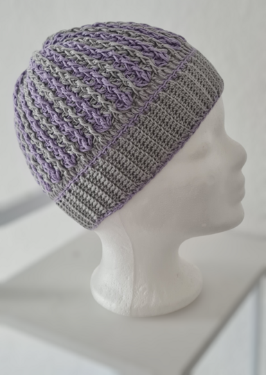 Die Mütze kann in jeder beliebigen Größe gehäkelt werden. Mein Modell habe ich passend für einen Kopfumfang mit ca. 54cm gearbeitet.