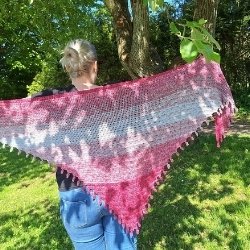 Ein gehäkeltes symmetrisches Dreieckstuch mit einer verspielten Borte aus Korkenzieherlocken. Dieses Tuch ist perfekt für Anfänger geeignet. Die Korkenzieherlocken verleihen ihm eine besondere verspielte Note und machen es zu einem hübschen Accessoire – ideal für junge Mädchen oder auch für Erwachsene mit einer Vorliebe für verspielte Details.