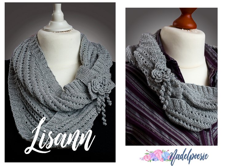 LISANN kann locker um den Hals getragen werden und rundet so jedes Outfit für Büro und Business ab. Für ganz besondere Anlässe kann der Loop mit dem Band und der gehäkelten Brosche verziert werden und wirkt so elegant bei Hochzeiten, Festen oder Opernbesuch. Das Band hilft beim Drapieren und sorgt dafür, dass auch alles an Ort und Stelle bleibt. Das Muster ist von beiden Seiten schön anzusehen.