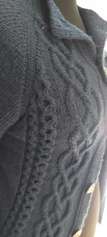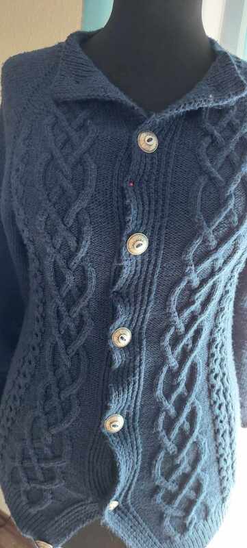 Diese Anleitung ist für eine wunderschöne RVO-Jacke mit zwei verschiedenen keltischen Mustern, die auch als Mantel eine mehr als gute Figur macht. Ich garantiere Dir, das wird Deine neue Lieblingsjacke!