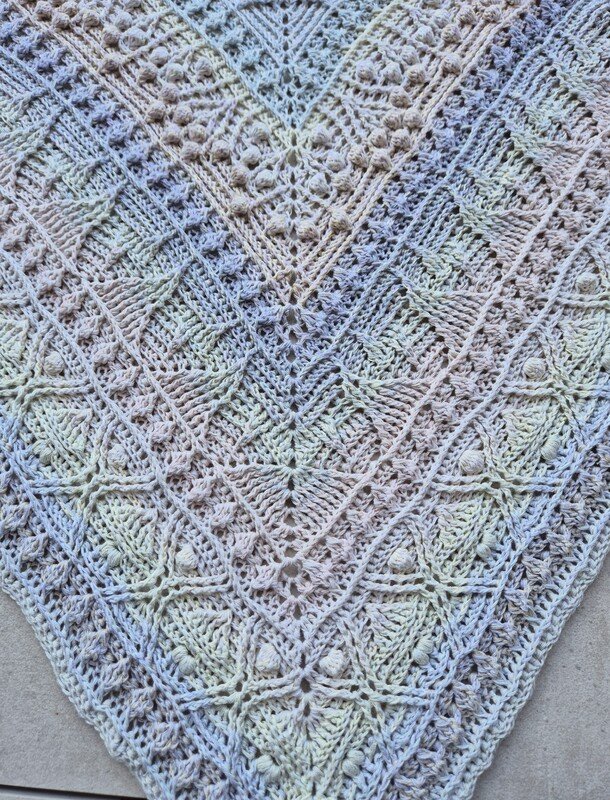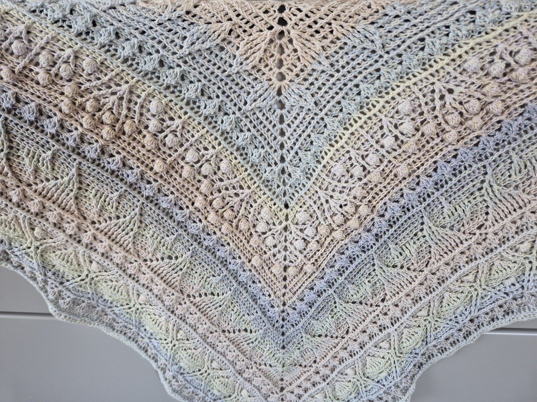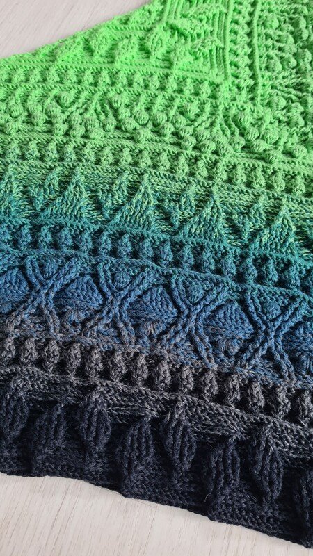 Das Tuch ist Teil des großartigen Projektes „Jahresprojekt 2025“, bei dem sich 4 Designer zusammengeschlossen haben, um je ein Tuch zu einem Element zu entwerfen. Die einzelnen Tücher können miteinander kombiniert werden und bilden so eine Decke. Jedes Tuch kann individuell aber natürlich auch als Tuch verwendet/getragen werden.