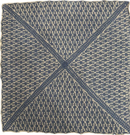 Wenn ihr die Decke in zwei verschiedenen Grundfarben A und zwei verschiedenen Farben B arbeitet, benötigt ihr von jeder Farbe 300 g und noch 2 Knäuel für die Umrandung in einer Farbe A und einer Farbe B = 1400 g