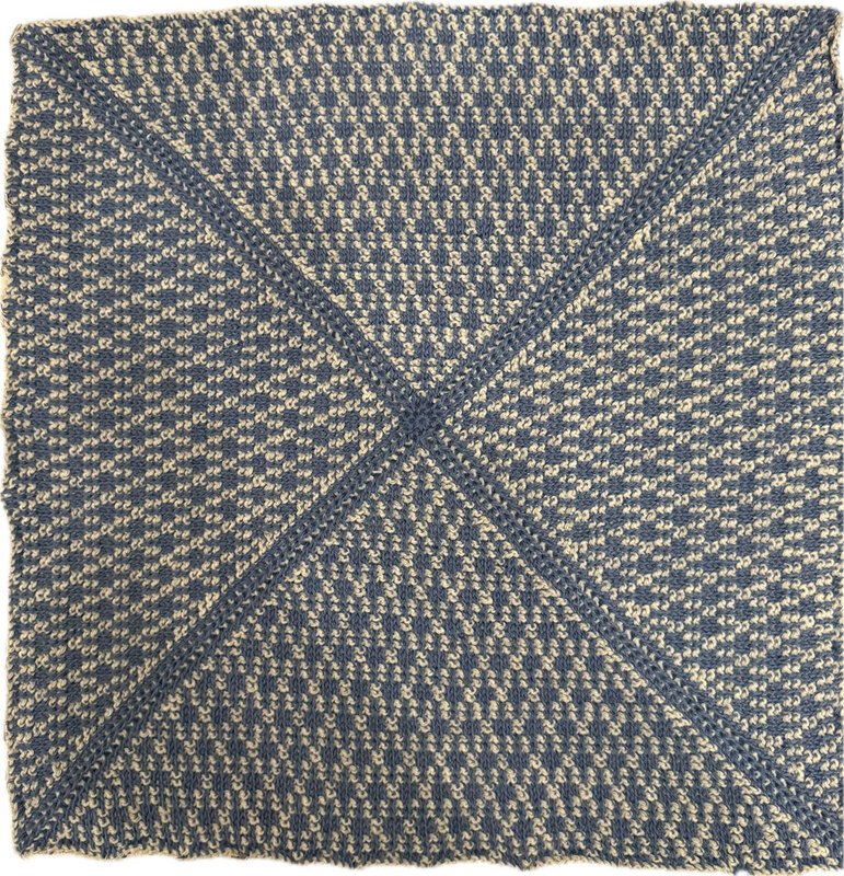 Die Patches wiegen knapp 100 g = 1200 g und für die Umrandung werden weitere 2 Knäuel benötigt.