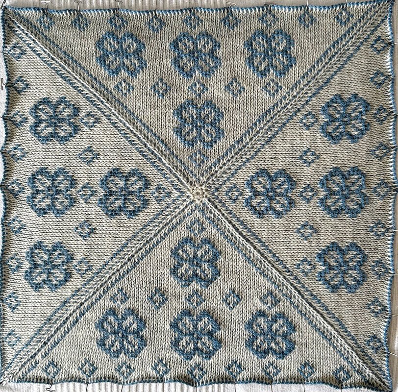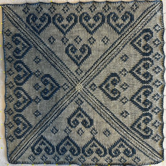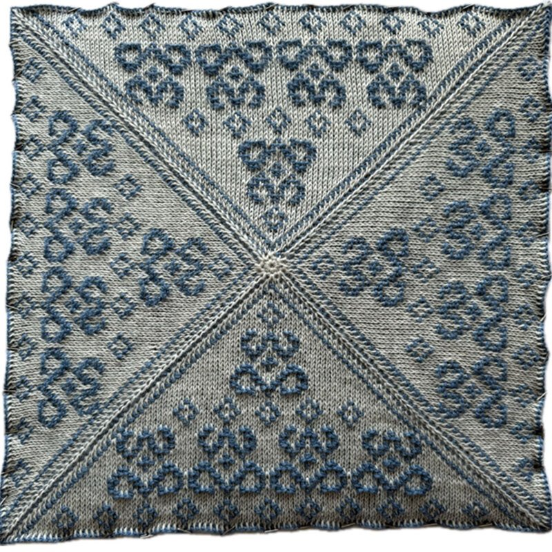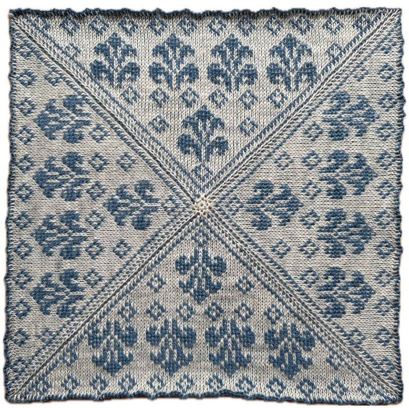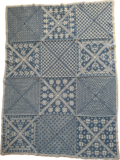Die Decke besteht aus 12 Patches mit unterschiedlichen Mustern, die ab dem 15.01. monatlich zur Anleitung mit dazu heruntergeladen werden können.
