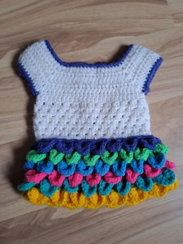 Mit dieser Schritt für Schritt Häkelanleitung könnt ihr ganz einfach ein Puppenkleid mit Drachenschuppen häkeln. Passt einer 43cm Puppe.