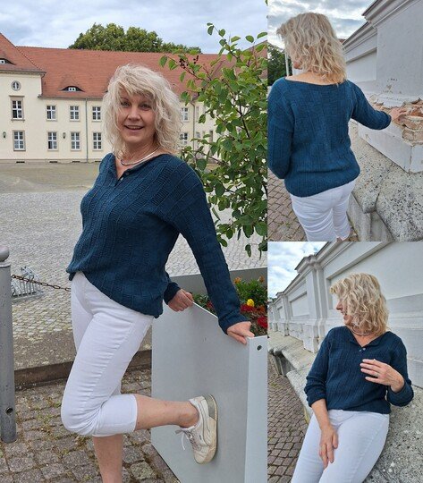 Maschenprobe im Muster: 25 M = 10 cm Breite, 38 Reihen in der Höhe