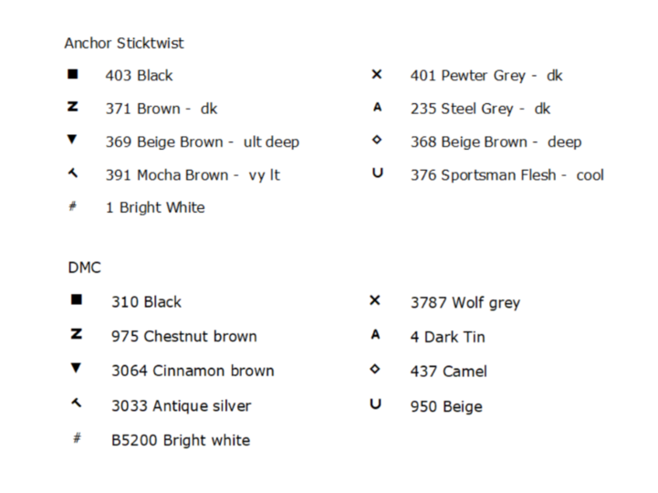 Garnvorschlag Anchor Sticktwist und DMC, 9 Farben,