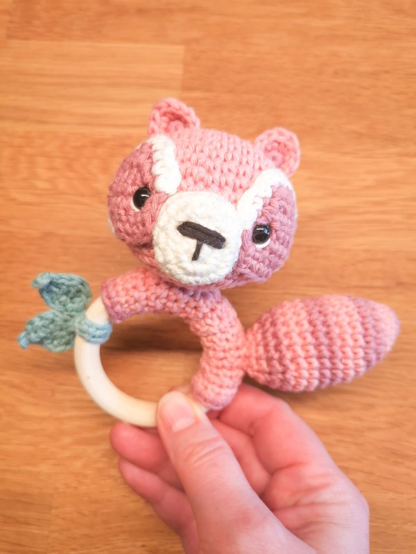 ich freue mich, dass du den Weg zu mir gefunden hast und danke dir für dein Interesse an der Häkelanleitung zur zuckersüßen Waschbärrassel "Luka". Der Waschbär kann als Greifring oder mit Rassel im Kopf gehäkelt werden und ist ein schönes Geschenk für einen neuen Erdenbürger zum Beispiel zur Geburt.