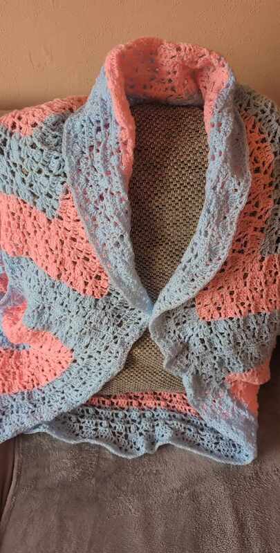 Ich habe hier einen total bunten Bobbel, der möchte gerne ein Seelenwärmer werden. Für die Form orientiere ich mich an einem Strickstück, welches ich von meiner Schwester habe. Dieser ist absolut schlicht gehalten. Das wollte ich etwas anders, vor aööem, da ich auc ncit besonders gut im Stricken bin, so ist dieses gehäkelte Stück entstanden.