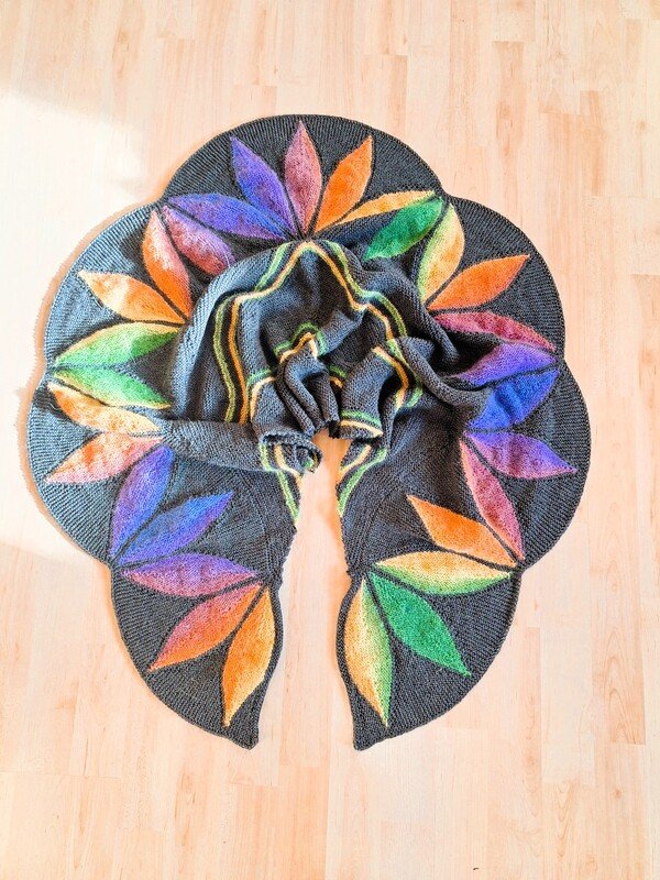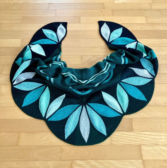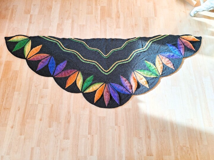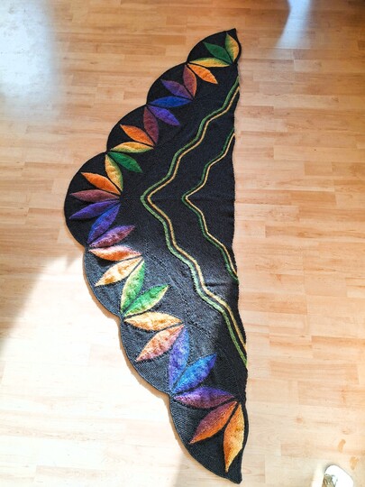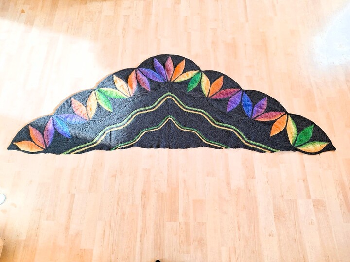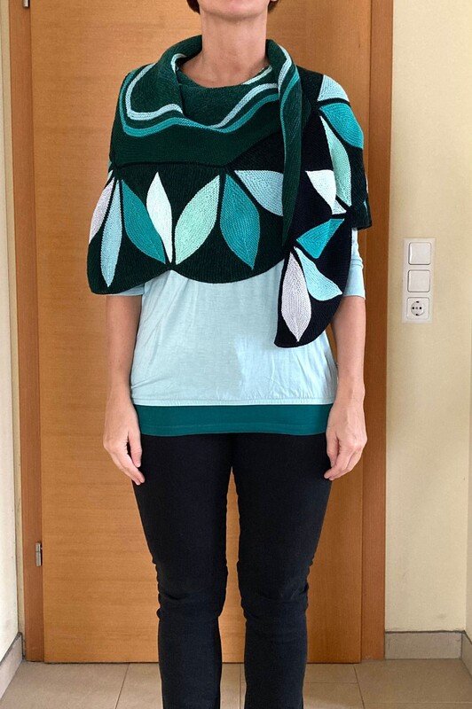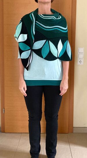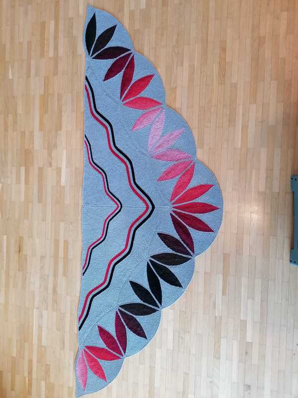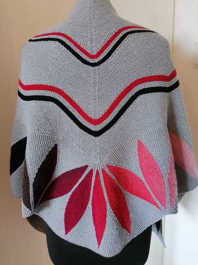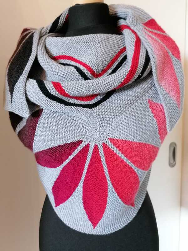 Es ist ein gleichschenkeliges Dreickstuch das hauptsächlich nur aus verkürzten Reihen besteht.
