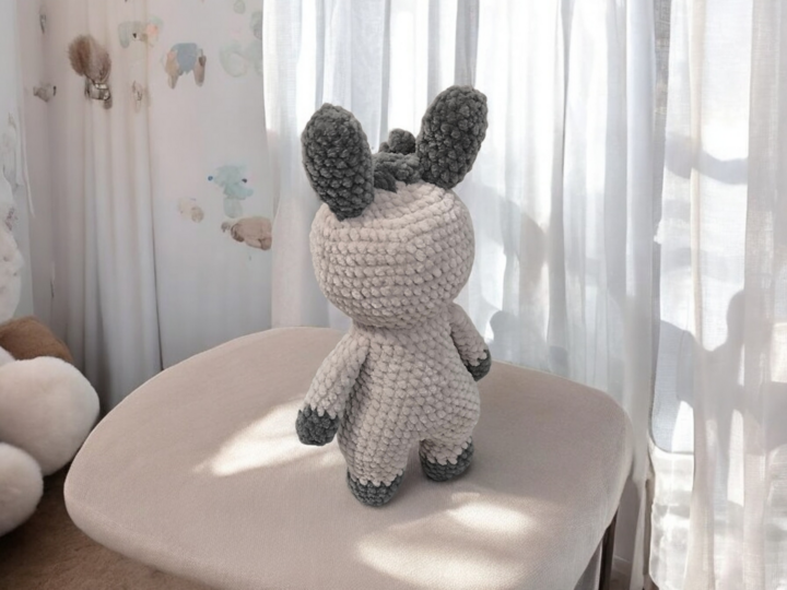 Wenn du das empfohlene Garn und die empfohlene Nadelstärke verwendest, wird das fertige Spielzeug so groß sein: 25cm (9 Zoll)