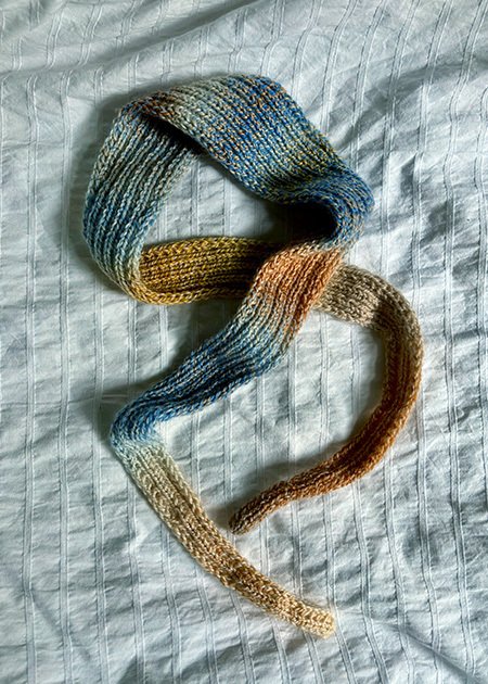 Der blau/orange Lotta Scarf Light wurde in “Zauberball Edition 3” (Fb. 2329 Strandcafe) von Schoppel gestrickt.
