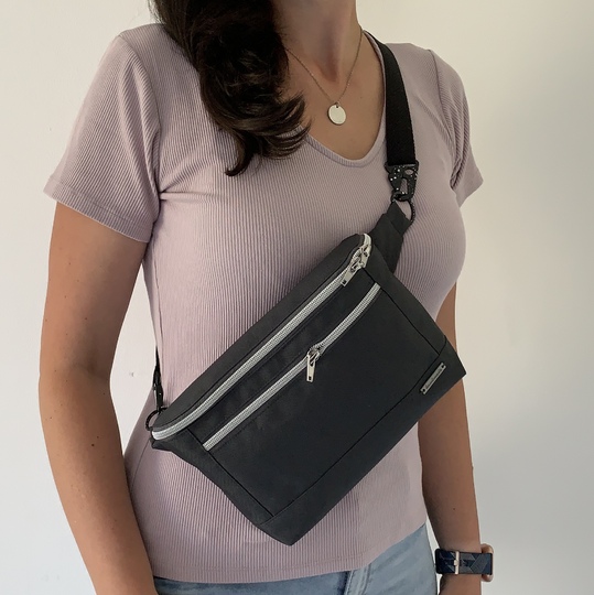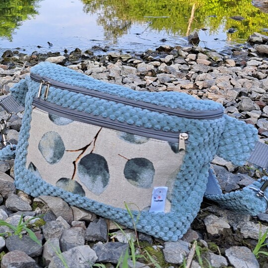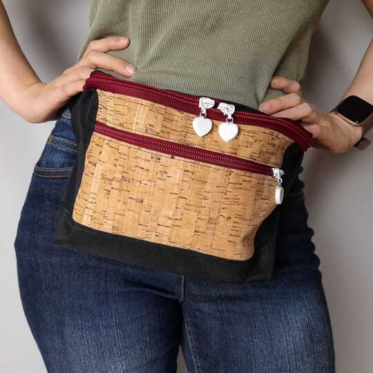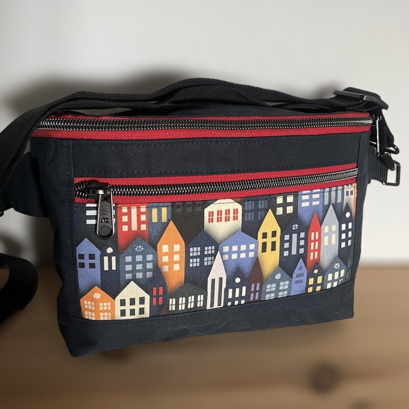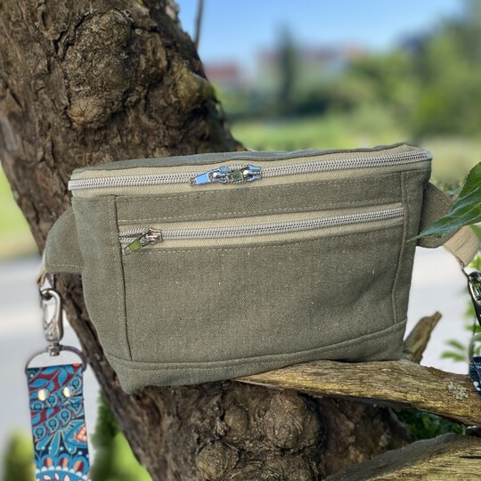 Kabäusken ist ein typischer Begriff aus dem Ruhrpott und steht für eine kleine Kammer mit ordentlich Stauraum. Genau das ist diese Bauchtasche, Stauraum auf kleinstem Raum. Durch den eckigen Schnitt passt bis zum Boden viel hinein, durch die halbrunde Klappe kann die Tasche ganz einfach von oben beladen werden.