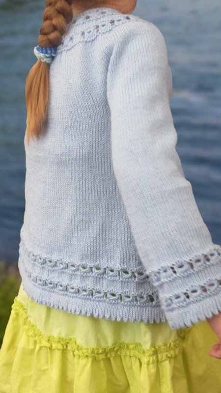 Das gezeigte Modell wurde in Größe 110/116 gestrickt.