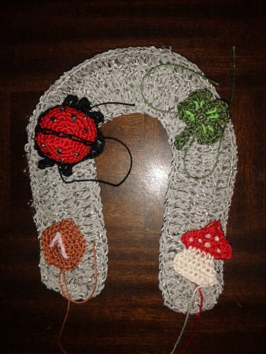 Mit Kleeblatt, Fliegenpilz, Geldstück und Marienkäferchen ...