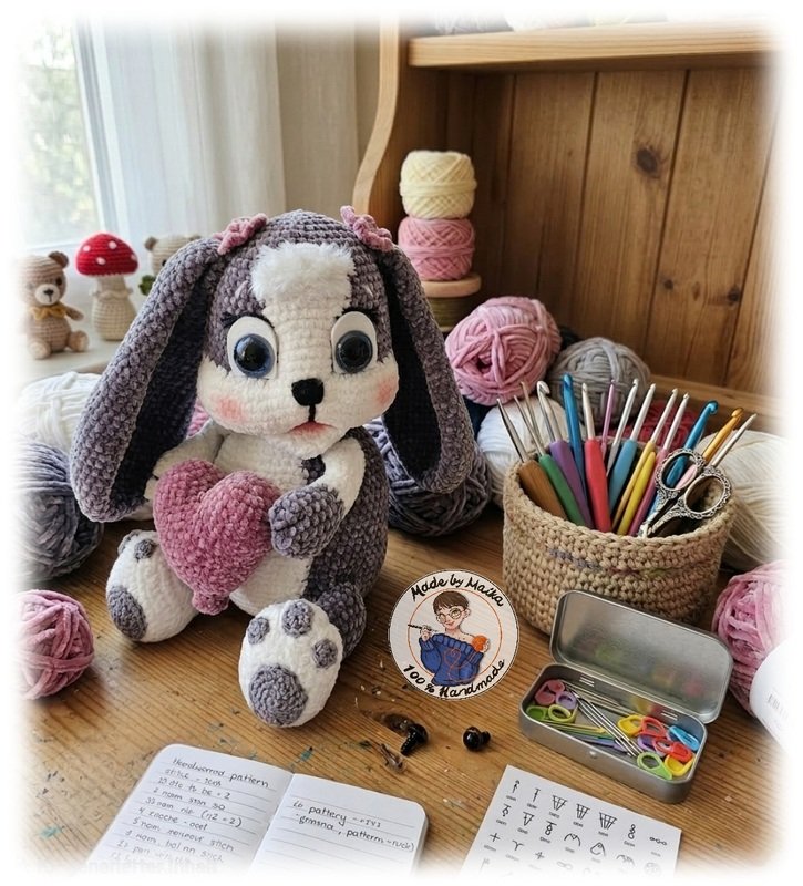 Schaut mal, wer hier gehoppelt kommt! Ein kleiner grau-weißer Schlappohrhase mit den größten Kulleraugen, die ihr je gesehen habt. Er ist nicht nur super kuschlig, sondern auch ein treuer Begleiter für Groß und Klein. Perfekt für der Osterkörbchen, Kinderzimmer oder einfach als süßer Glücksbringer.