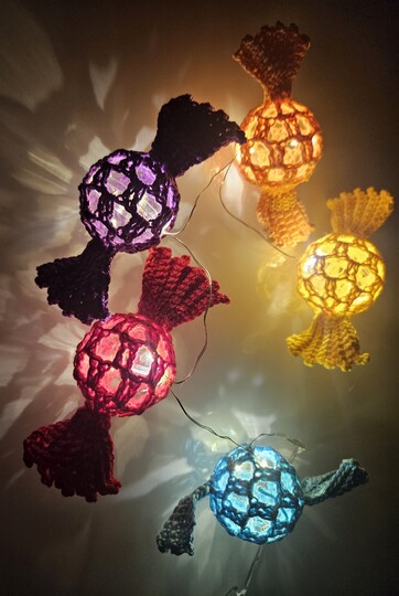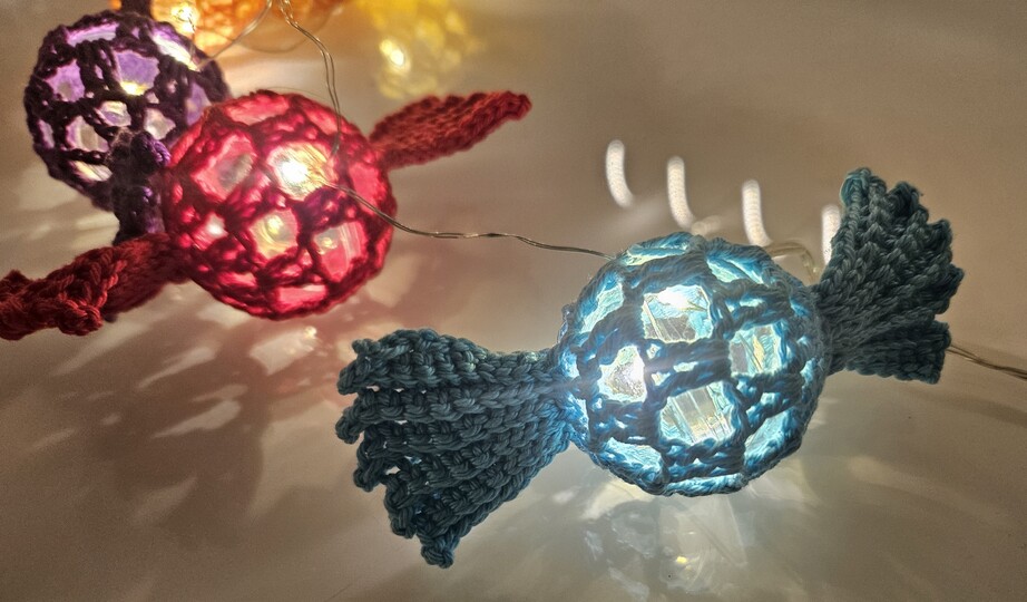 Eine detaillierte Häkelanleitung für eine Zauberhafte Bonbon-Lichterkette.
