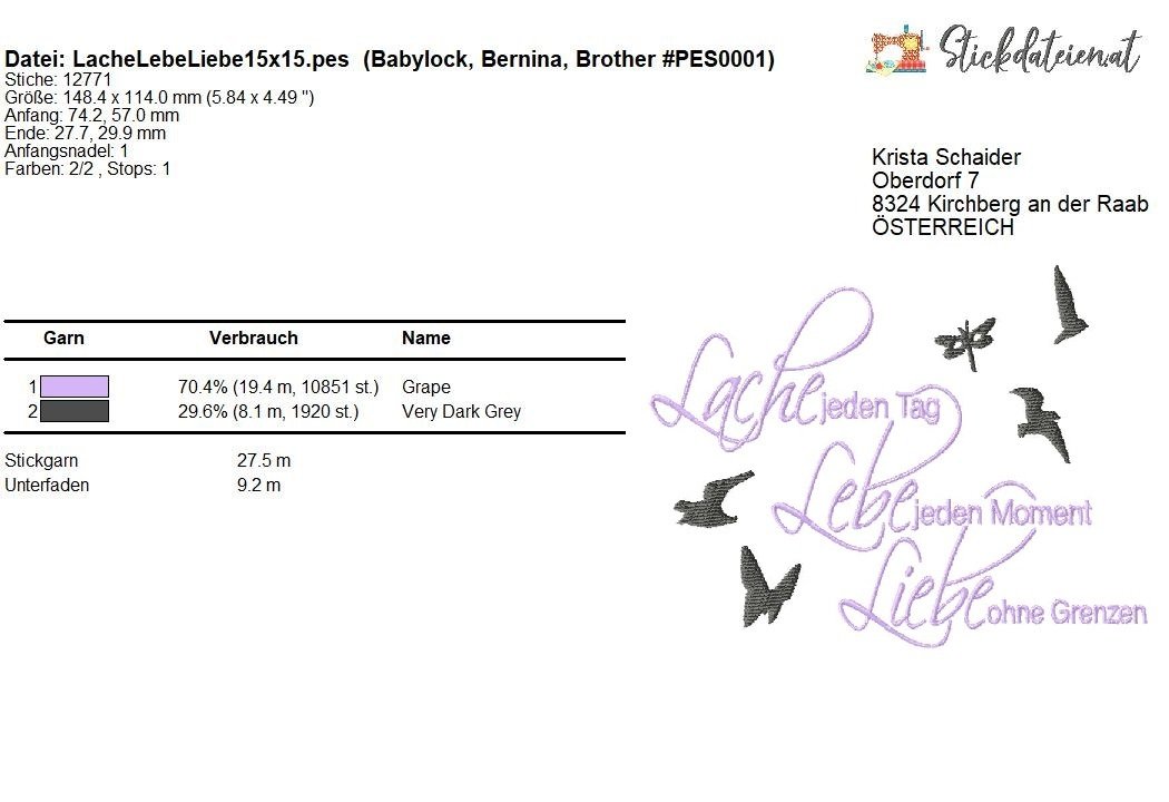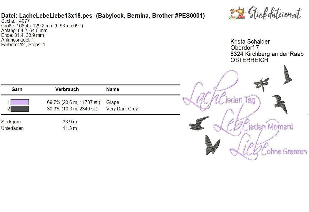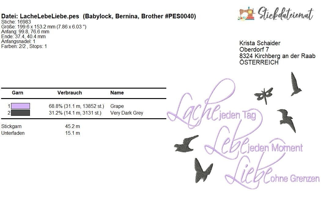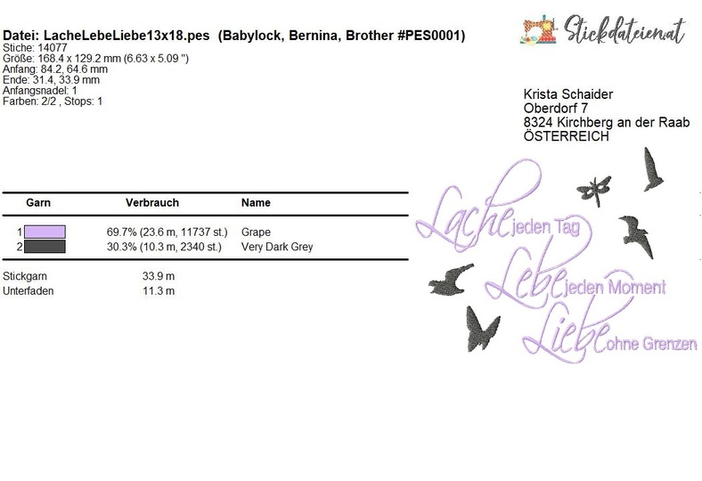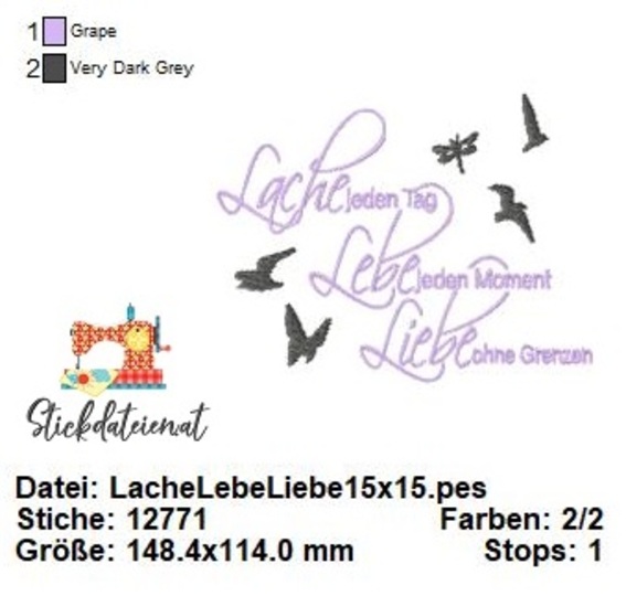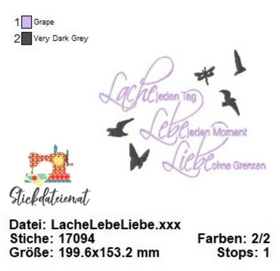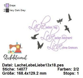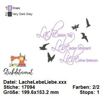 Lache, Lebe, Liebe – Stickdatei