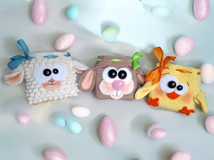 In dieser Anleitung ist Schritt für Schritt erklärt, wie Du die Beutel häkeln musst. Die Anleitung besteht aus 26 Seiten. Du erhältst mit dem Kauf alle 3 Anleitungen ( Hase, Küken und Schaf). Diese sind mit vielen farblichen Fotos und Schritt für Schritt Anweisungen versehen. Auch das kindersichere Anbringen der Augen wird in dieser Anleitung genau erklärt.