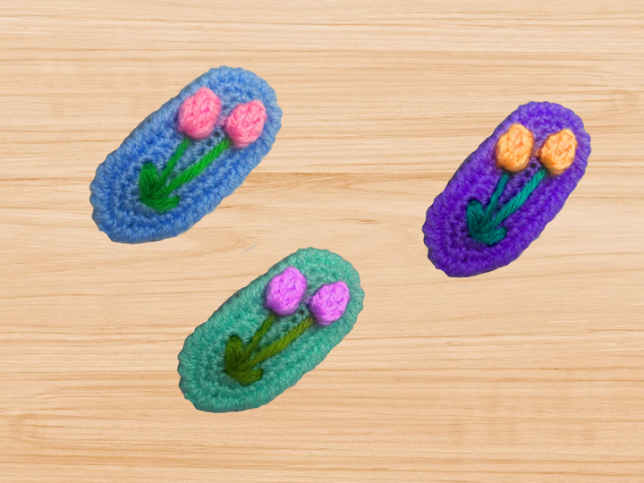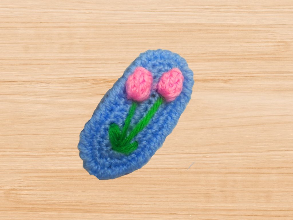 Es wird erklärt: 5 Häkelanleitung für Eine Häkelhaarklammer Seiten, Beschreibung, Abbildungen.