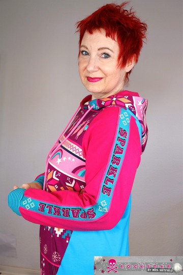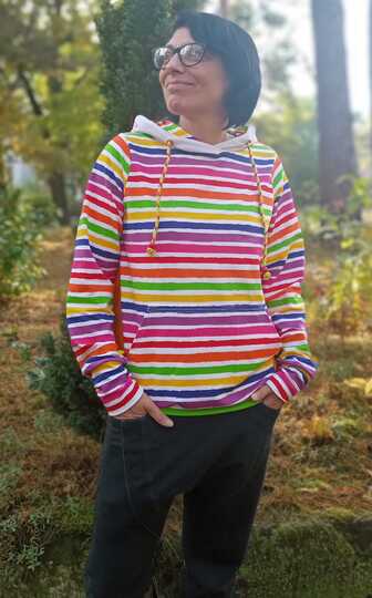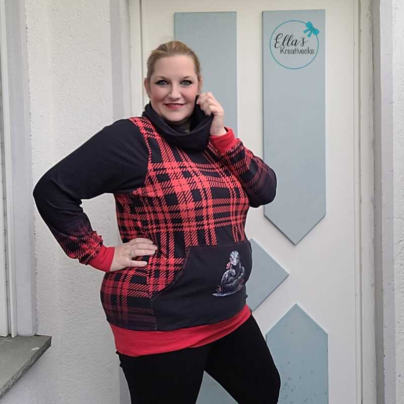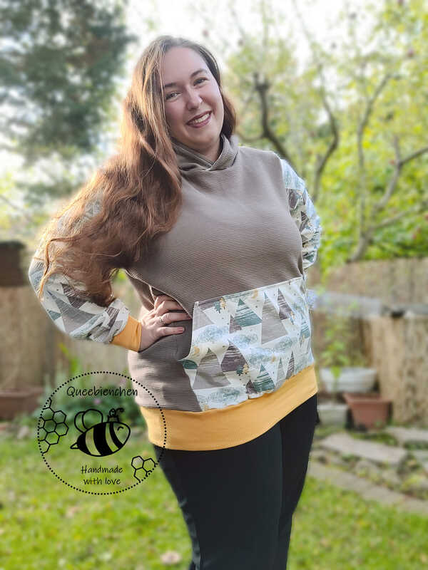 Steff ist ein unisex Hoodie mit asymmetrischem Rückenteil, lässiger Kapuze und Kängurutasche. Er ist sowohl für Männlein als auch Weiblein nähbar. Durch das asymmetrische Rückenteil liegen die Seitennähte vorn und umschließen das Vorderteil und die Tasche.So kannst du gut mit verschiedenen Stoffen spielen und immer wieder neue Kombis ausprobieren. Ein schnell genähter Allrounder mit dem gewissen Etwas, der bei Männern und Frauen eine gute Figur macht. Tob dich am Schnitt aus ! Bitte lies die Anleitung und beachte die Maßangaben , damit auch wirklich alles sitzt!