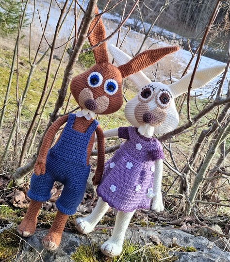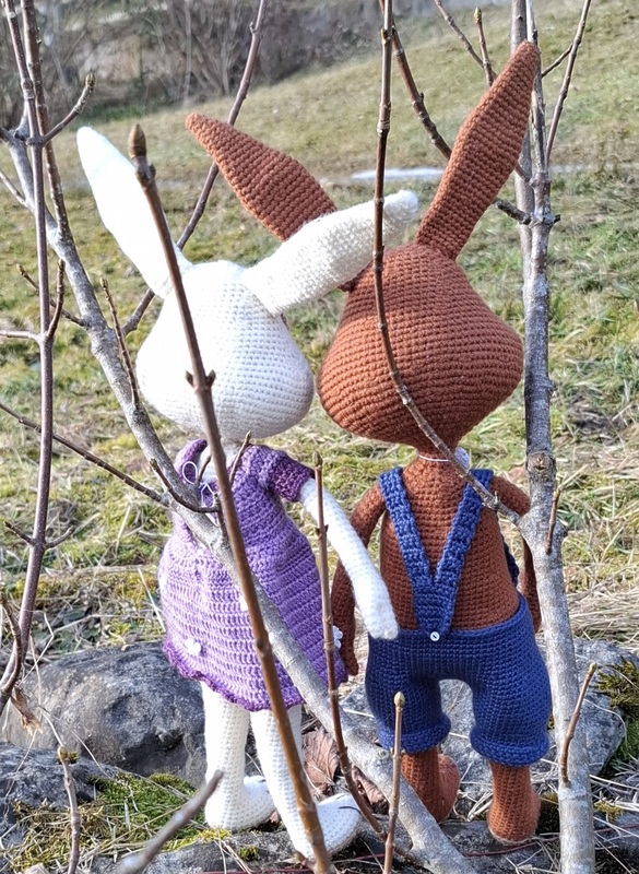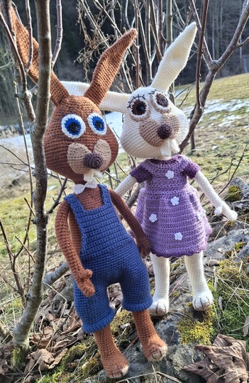Sie beinhaltet eine Anleitung zum häkeln von einem Hasen und den gezeigten Kleidern dazu.