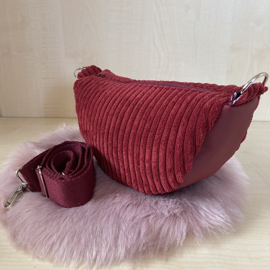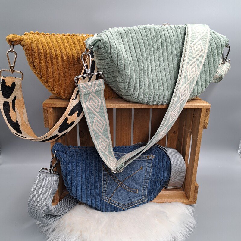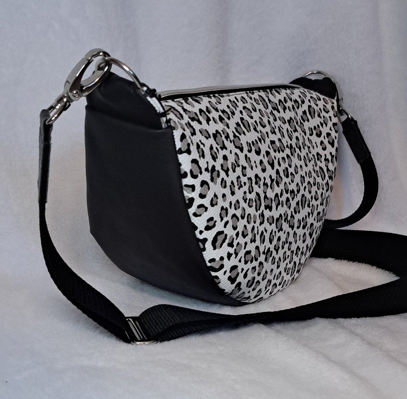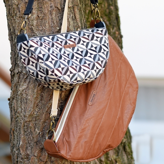 MondT(o)ur ist eine trendige Umhängetasche in halbrunder Form in zwei Größen. Bei einer Größe von 30 mal 15 cm und einer Tiefe von 10 cm bietet die Mini genug Platz für Geld, Handy, Schlüssel und etwas Kleinkram. Die größere Variante mit einer Breite von 40 cm, einer Höhe von 20 cm und einer Tiefe von 13 cm hat ordentlich Stauraum. Innen gibt es ein Steckfach und ein Reißverschlussfach. Das Reißverschlussfach kann auch außen eingenäht werden. Sie gehört zu meiner Taschenreihe mit dem Minitäschchen MiniaT(o)ur und der größeren Taschenvariante GrandT(o)ur, die jeweils in zwei Größen daherkommt.