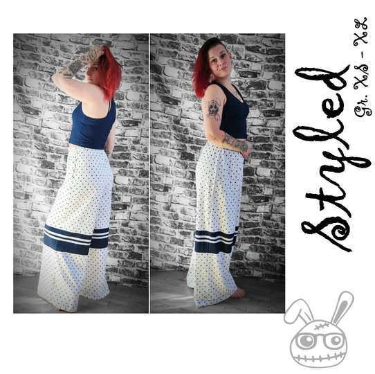 Styled ist eine lässige Sommerkombi ,welche aus weiter highwaist Hose und 2 unterschiedlichen Shirts besteht. So hast du die Wahl ob du das Ganze sportlich oder eher chic kombinierst. Du kannst hier aus weich fallenden sommerlichen Stoffen nähen und unzählige Kombis zusammen stellen, so dass du eigentlich für den Sommer gut gerüstet bist. Natürlich kannst du die Hose auch kürzen. So erhältst du immer wieder einen neuen Look.