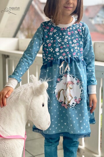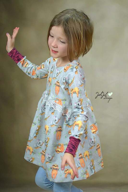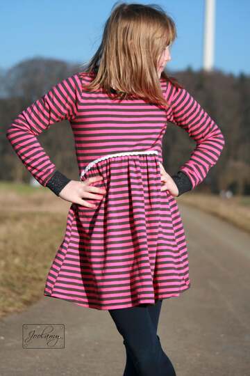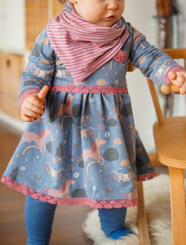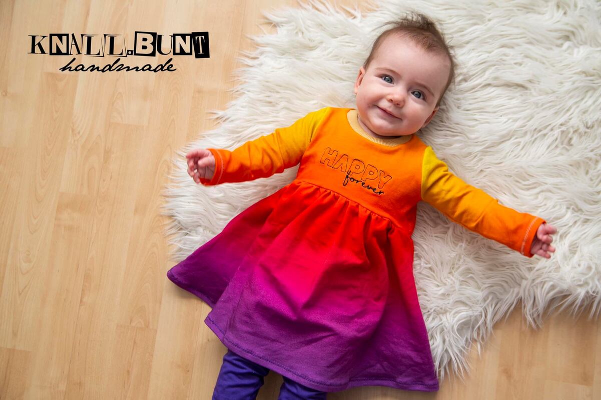 Den Schnitt habe ich in Gr. 74 bis 152 in meinem Echtgrößensystem für dich gradiert. Dabei passt z.B. Größe 74 ab einer Körpergröße von 74cm bis 79cm usw. Das Schnittmuster enthält weder Naht- noch Saumzugabe und ist auf Jersey ausgelegt.