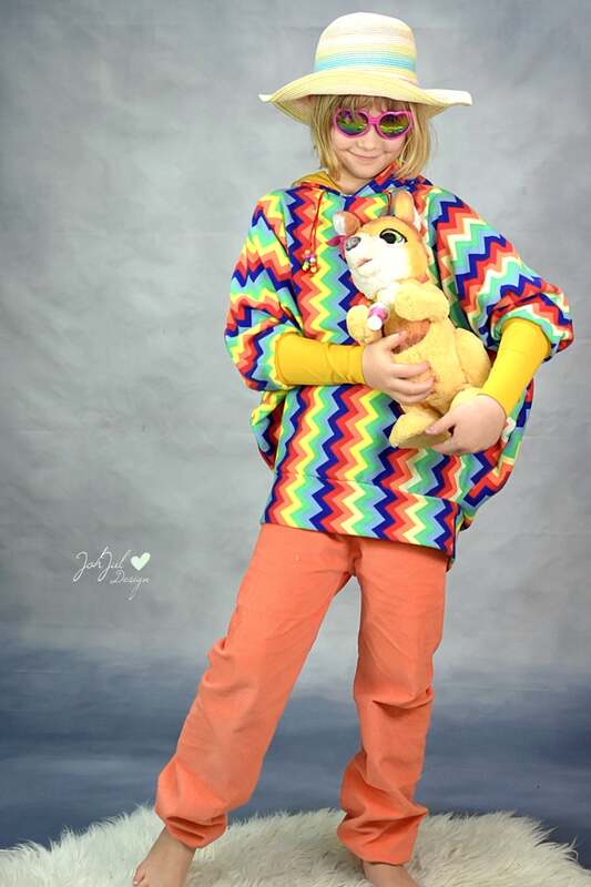 Den Schnitt habe ich in Gr. 74 bis 152 in meinem Echtgrößensystem für dich gradiert. Dabei passt z.B. Größe 74 ab einer Körpergröße von 74cm bis 79cm usw. Das Schnittmuster enthält weder Naht- noch Saumzugabe und ist auf dickere, feste Stoffe wie Sweat ausgelegt.