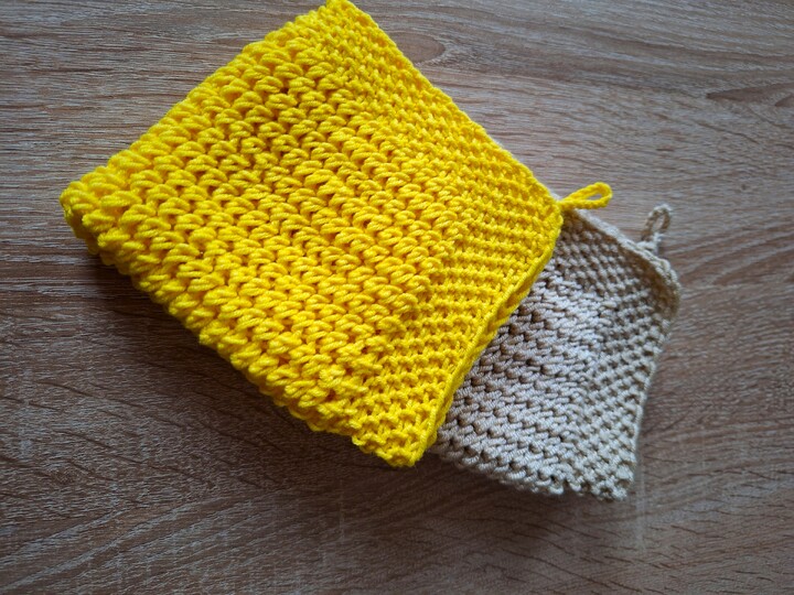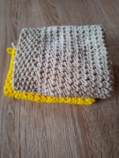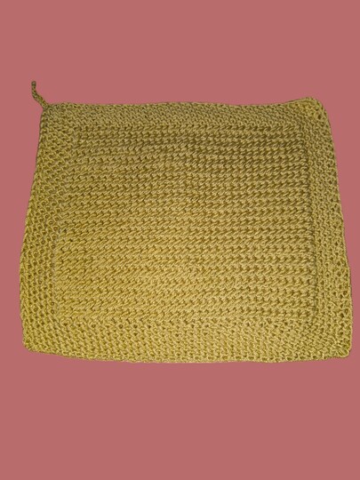 Ich habe 2 verschiedene Wollstärken verwendet und die Seifläppchen waren zwischen 23 cm x 23 cm und 25 cm x 25 cm groß.