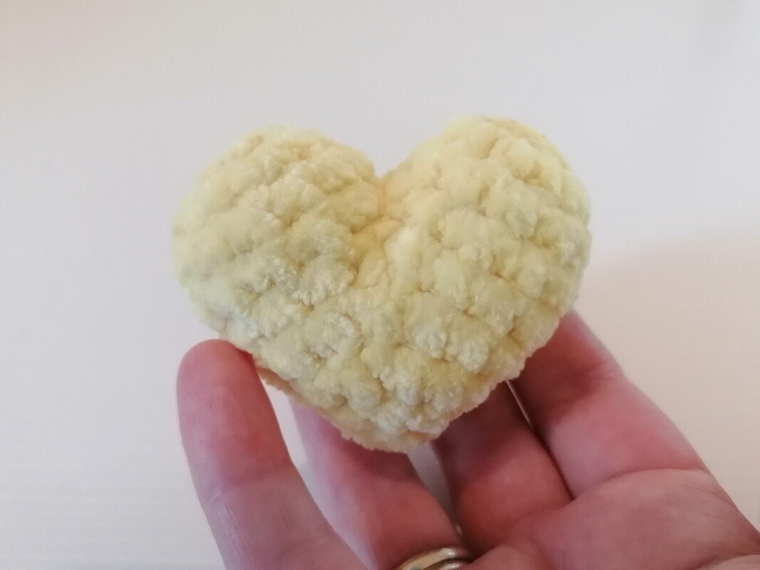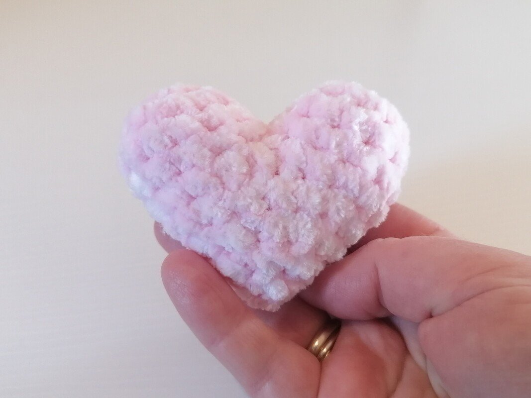 Diese Anleitung vermittelt nicht die Grundlagen des Häkelns. Sie besteht nur aus schriftlichen Anweisungen und Schritt-für-Schritt-Fotos, die erklären, wie man ein Amigurumi-Herz häkelt.