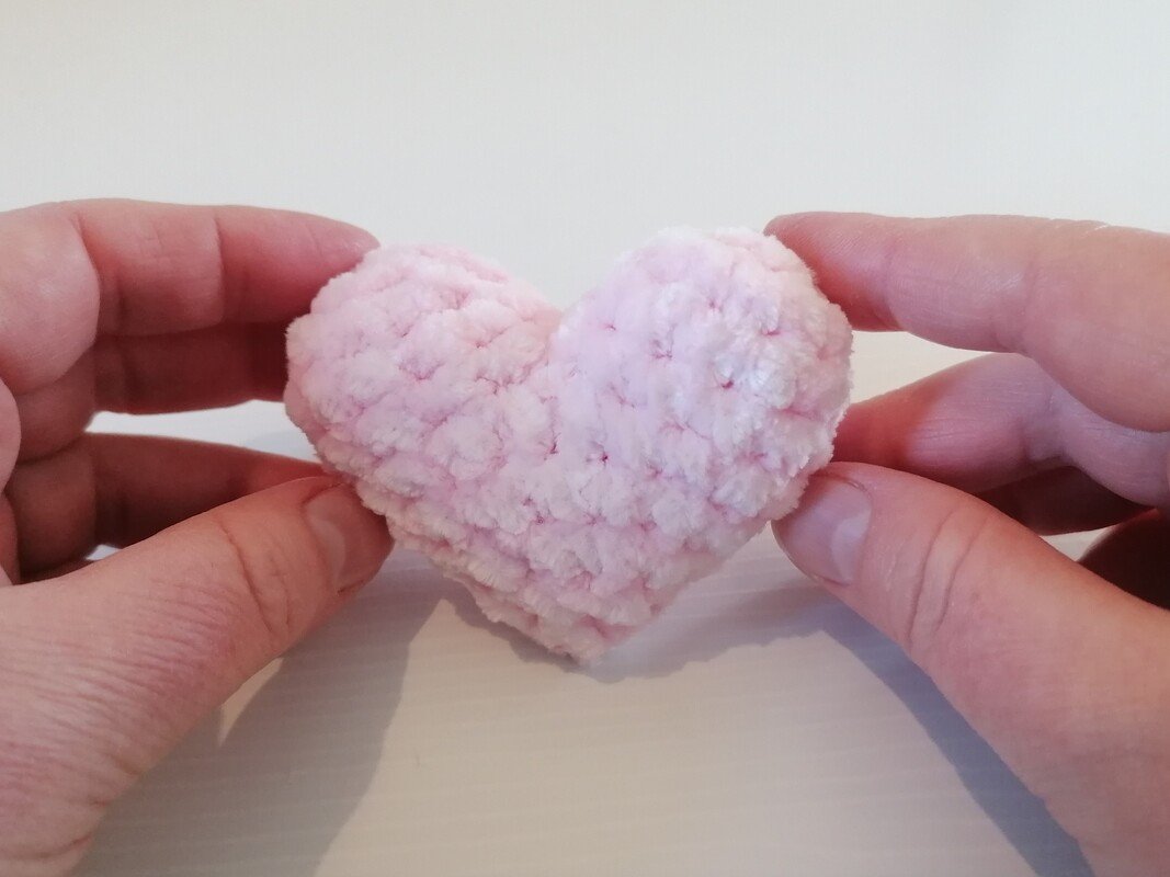 Mit dem angegebenen Garn und der Häkelnadel wird das Herz ca. 6 cm hoch.