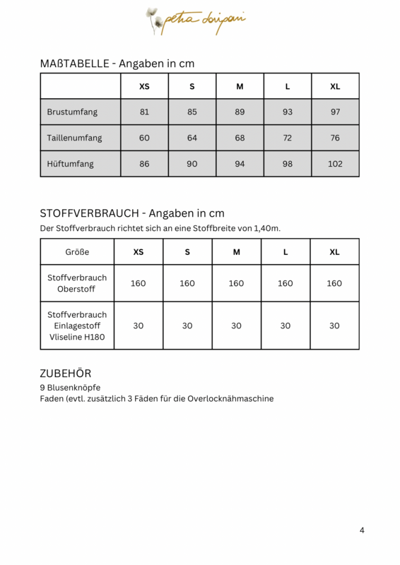 Das EBook enthält das Schnittmuster in den Größen 92-98-104-110