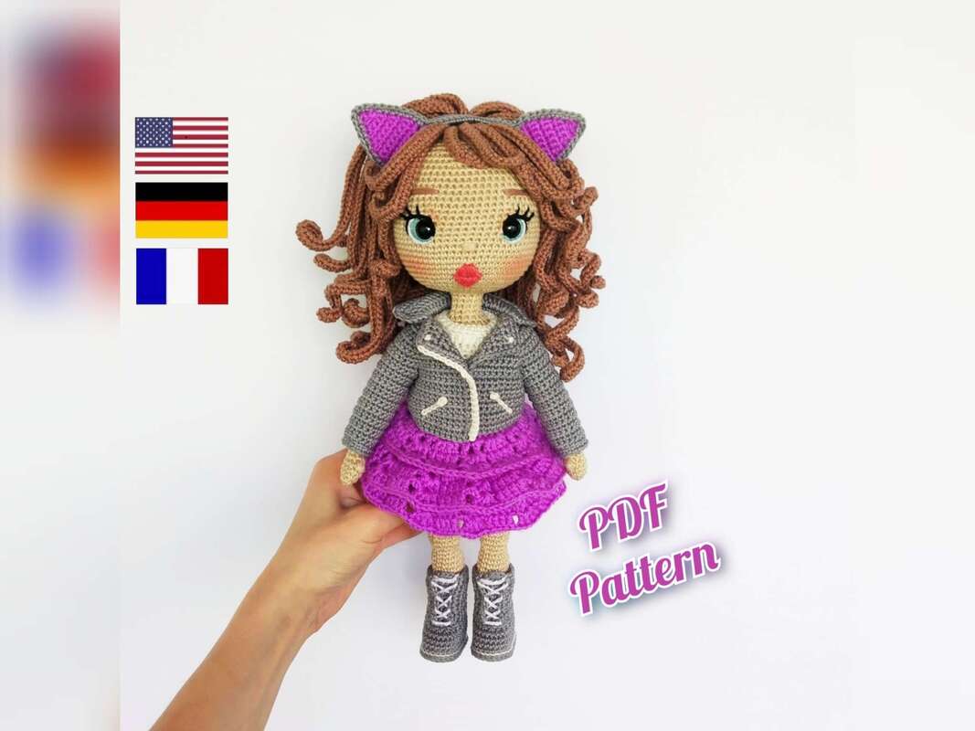 Diese Häkelanleitung enthält eine ausführliche Beschreibung mit vielen Schritt-für-Schritt-Fotos, wie man einen Puppenkörper, eine Frisur, das Gesicht, ein Kleid, eine Jacke, Stiefel, einen Haarreif und ein Höschen anfertigt.