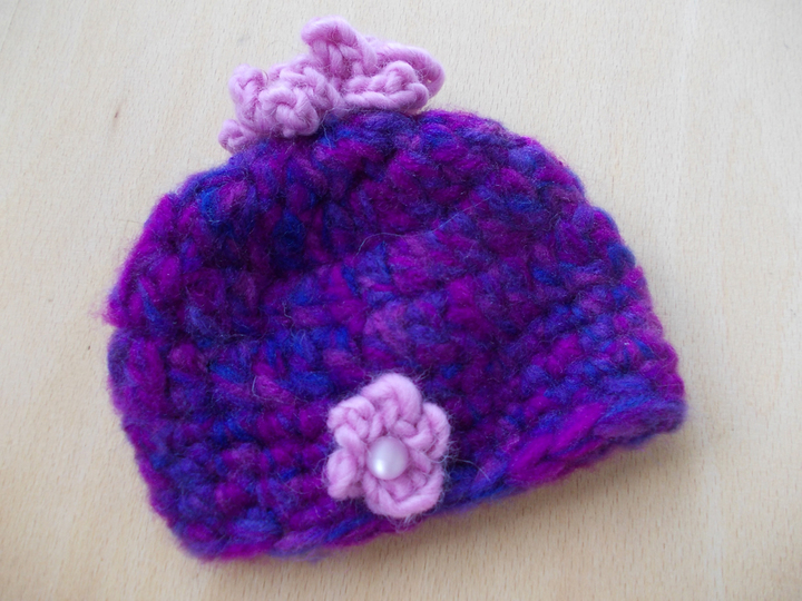 Verziert werden können die Mützen und der Poncho mit kleinen Häkelblüten (weitere Anleitungen für Häkelblumen gibt es in meinem Shop) und Perlen der Anleitung.