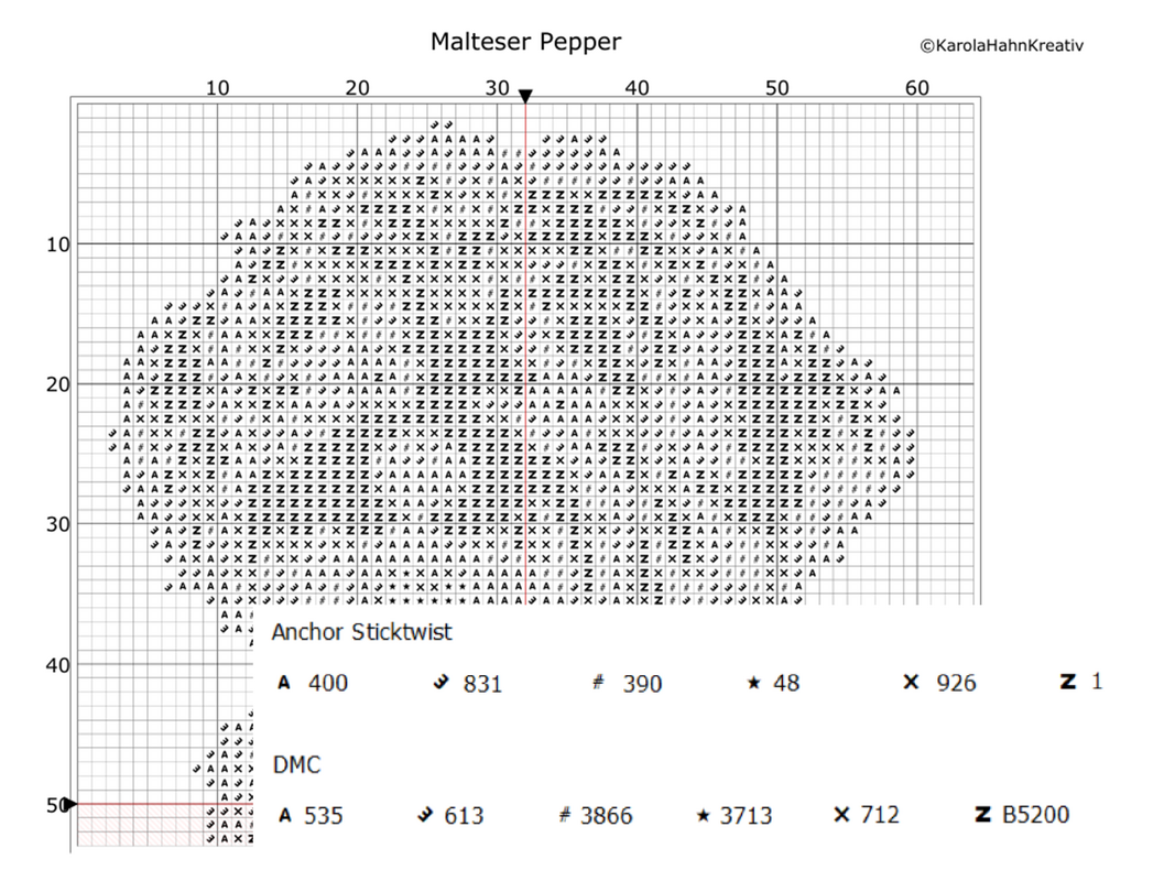 Die Kreuzstichvorlage vom niedlichen Malteser ist anfängergeeignet, da auschließlich ganze Kreuzstiche gestickt werden. Auch die Farbauswahl ist mit 6 Farben überschaubar.