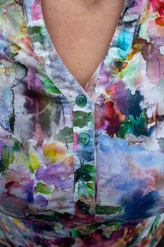 Als Material eignen sich Viskosewebware, Chiffon, Crêpe de Chine, Satin, Tencel, Batist, sowie dünne Versionen von Twill, Leinen, Ramie, Jeans Chambray, etc.