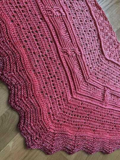 Ich habe beide Tücher mit je 1000/4 gehäkelt. Für beide Tücher wurde die Nadelstärke 3,75 verwendet. Das flache Tuch wurde ca 250x60cm groß und das klassische Dreieckstuch erreichte eine Größe von ca 220x80cm.