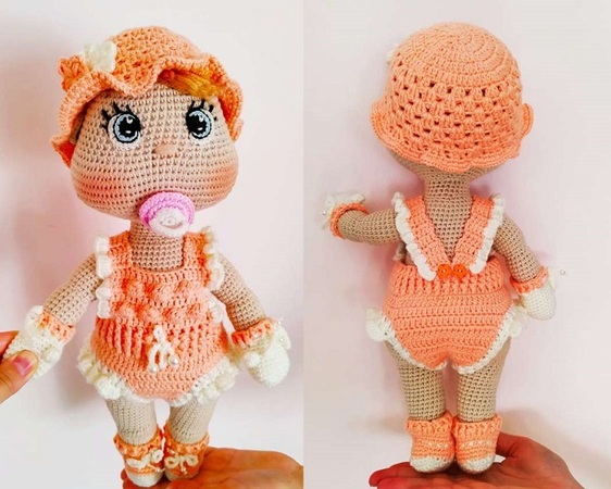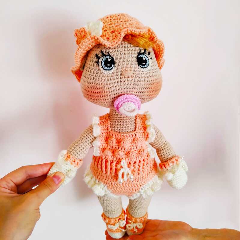 • Gehäkelte Puppe mit gehäkelten Augen und Schnuller