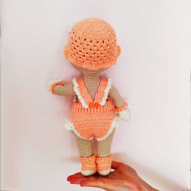 Diese Häkelanleitung enthält eine ausführliche Beschreibung mit vielen Schritt-für-Schritt-Fotos, wie man die Babypuppe Lulu im süßen Body häkelt.