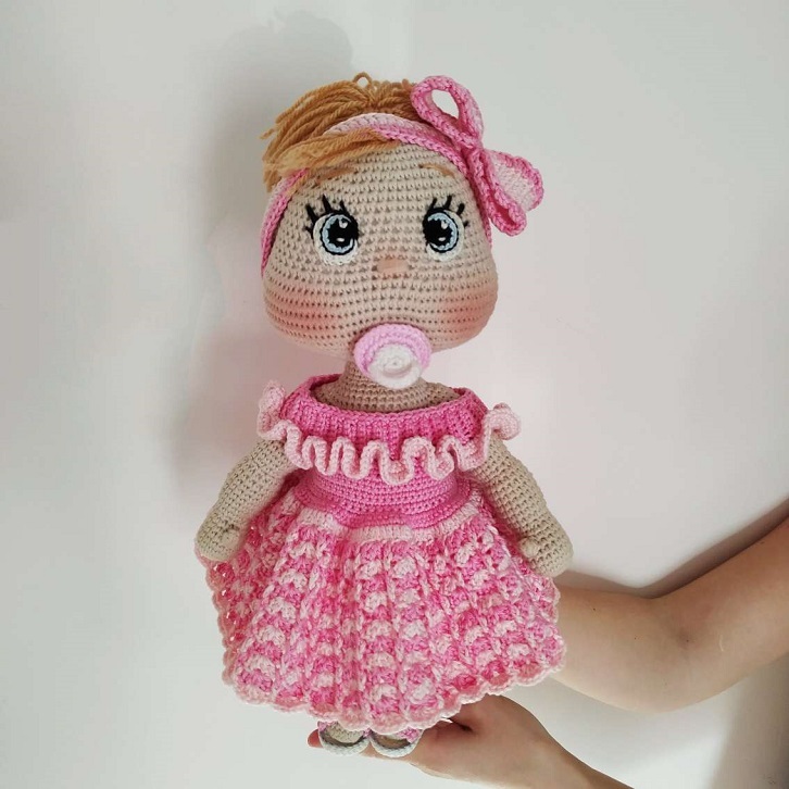 • Gehäkelte Puppe mit gehäkelten Augen und Schnuller