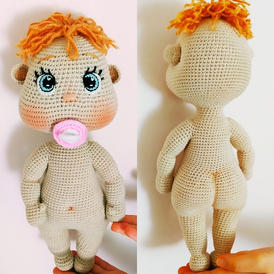 • Gehäkeltes Puppenkörpermuster mit gehäkelten Augen und Schnuller
