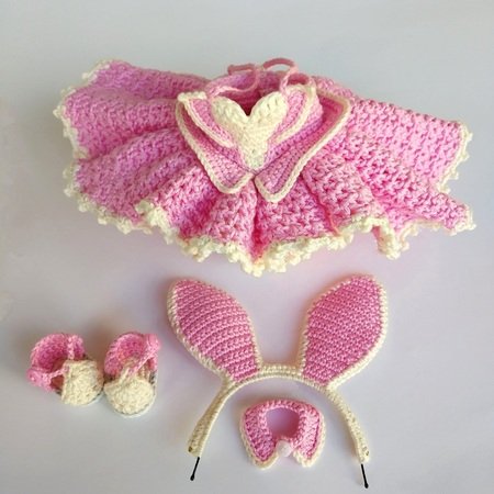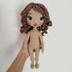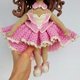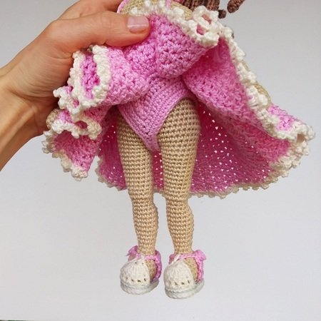 Diese Häkelanleitung enthält eine detaillierte Beschreibung mit vielen Schritt-für-Schritt-Fotos, wie man einen Puppenkörper, eine Frisur, das Gesicht, das Kleid, die Schuhe, den Kragen und den Reifen stickt.