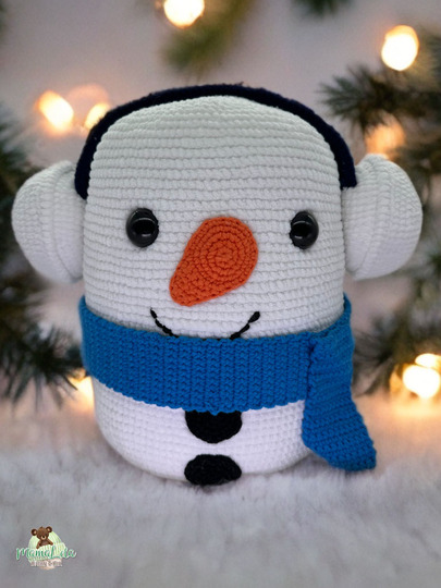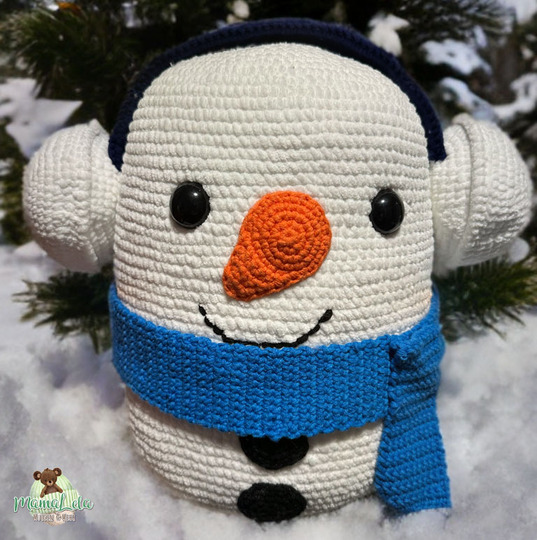 Mit dieser Häkelanleitung könnt ihr euch das im Artikelbild gezeigte Schneemannkissen zaubern.