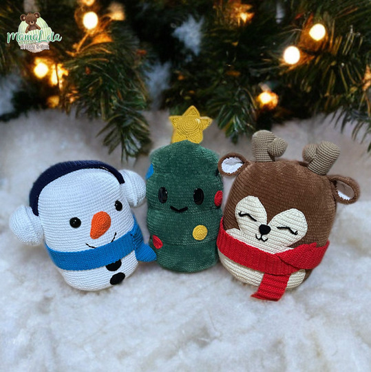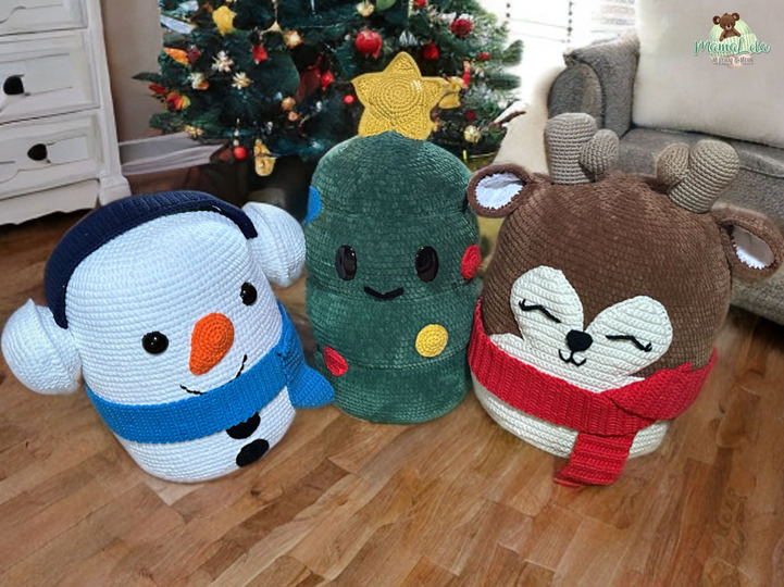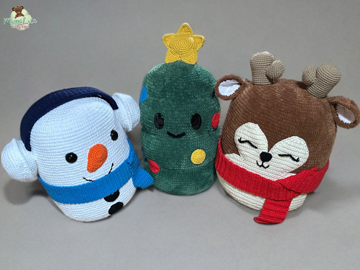 2023 hatte ich in Verbindung mit meinem Adventskalender das erste „nicht klassische“ Kissen entworfen. Der Weihnachtsbaum ist eine Art „Knuddelrolle“ und nicht wie man es von Kissen kennt quadratisch bzw. rechteckig. Da sich bei uns immer um die kuscheligsten Kissen gezankt wird, habe ich zwei weitere Motive zum Knuddeln gehäkelt. Der Schneemann aus dieser Anleitung und ein Rentier.